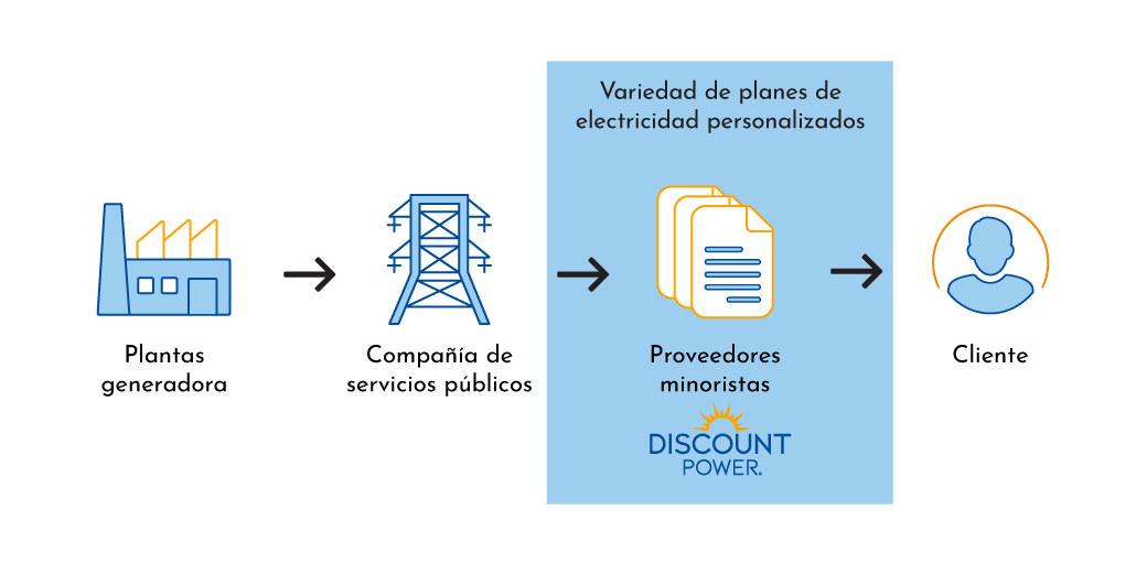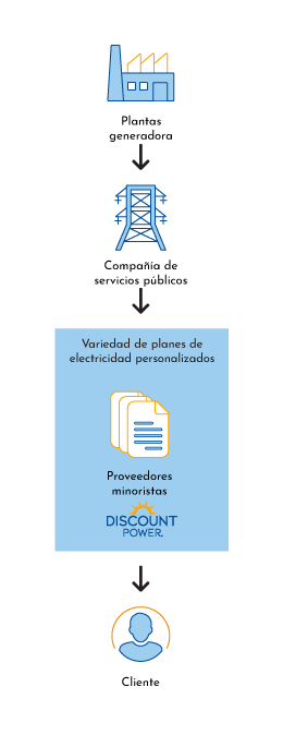 Aunque nosotros somos tu proveedor de electricidad, tu TDSP, también conocido como compañía de servicios públicos, es quien lleva la electricidad a tu hogar. La electricidad que compras a Discount Power llega a tu hogar a través de la infraestuctura (cables, transformadores y postes) los cuales reciben mantenimiento de tu TDSP.