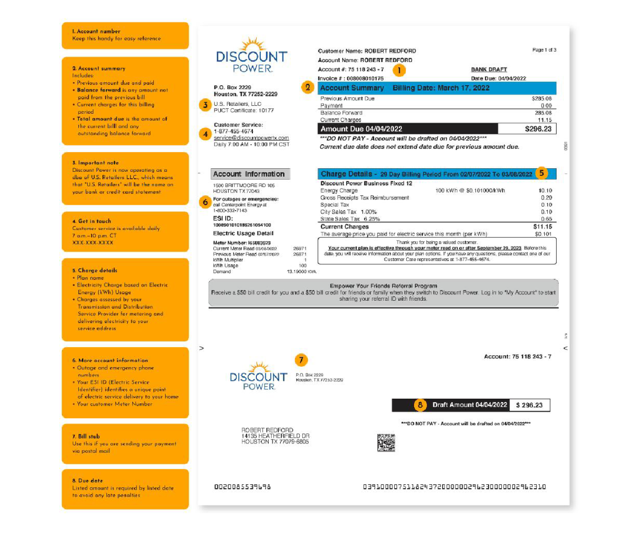 - Explora la factura de ejemplo a continuación para que entiendas mejor cómo se verá tu factura y lo que incluirá.